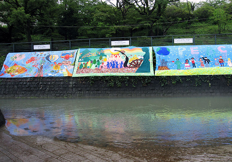 August 6, Kids Guernica exhibition was started along the riverside near the hypocenter of the atomic bomb blast on August 9, 1945 in Nagasaki. A peace pinting focusing on SDGs from Ecolint school in Geneva, Switzerland and a peace painting, "the Laughter of our Children", from the young people of Cushendall, County Antrim, Northern Ireland were also exhibited with several Japanese Kids' Guernica paintings. This exhibition is held until the end of August.